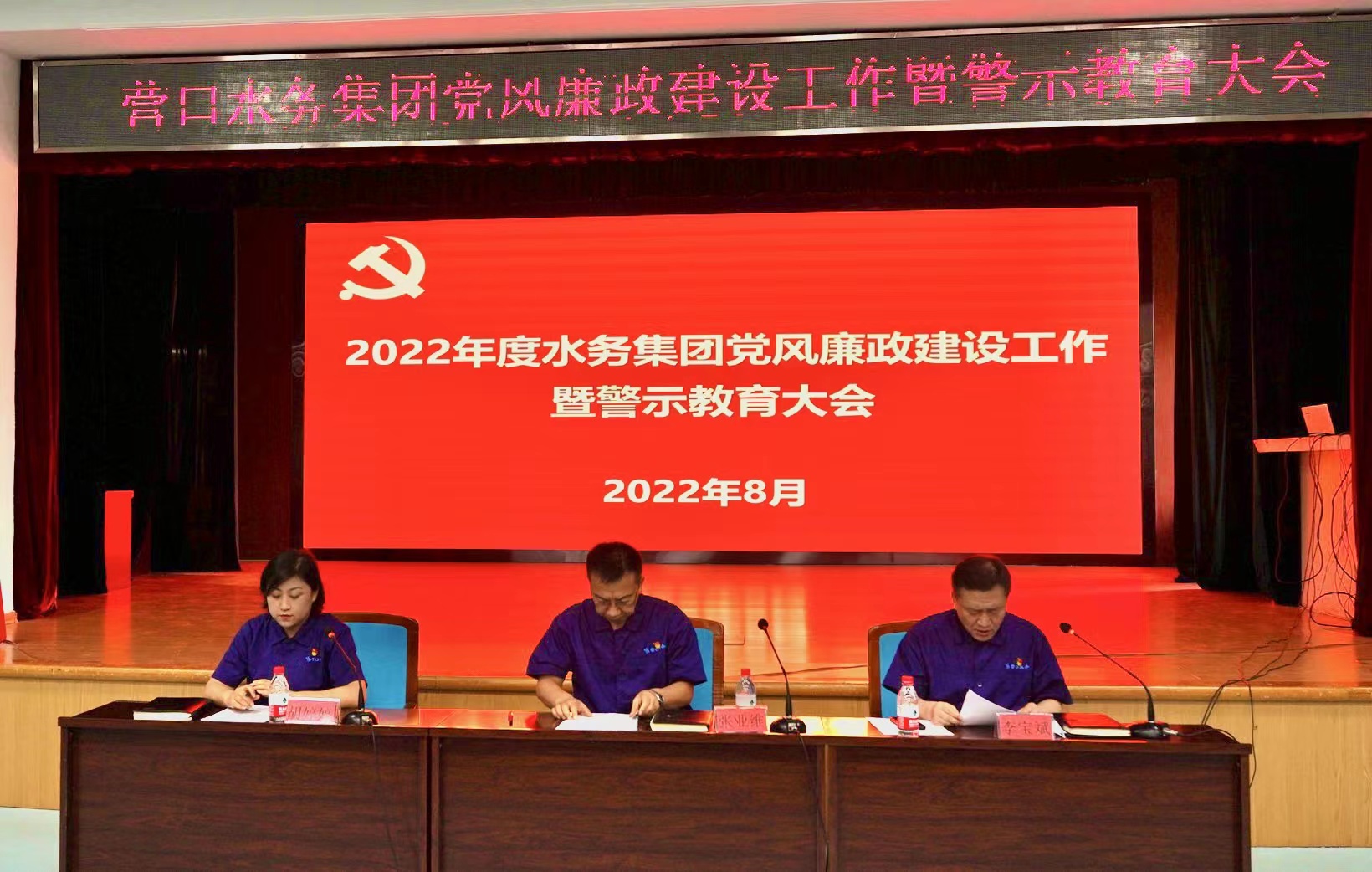 8月3日下午,水務(wù)集團黨委召開2022年黨風廉政建設(shè)工作暨警示教育大會。領(lǐng)導班子成員、各部門基層單位負責人及黨支部書記參會。會議由黨委副書記、總經(jīng)理李寶斌同志主持。